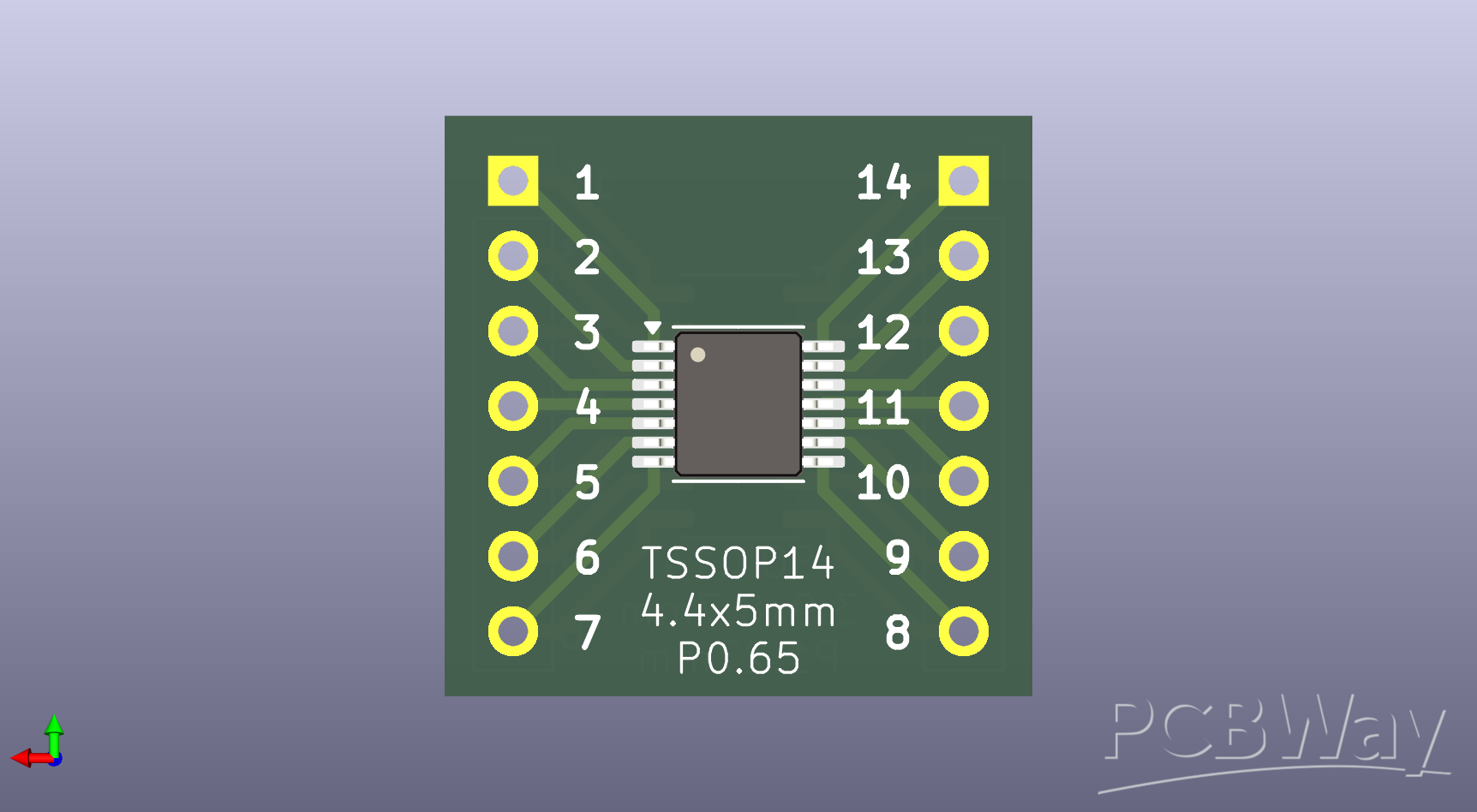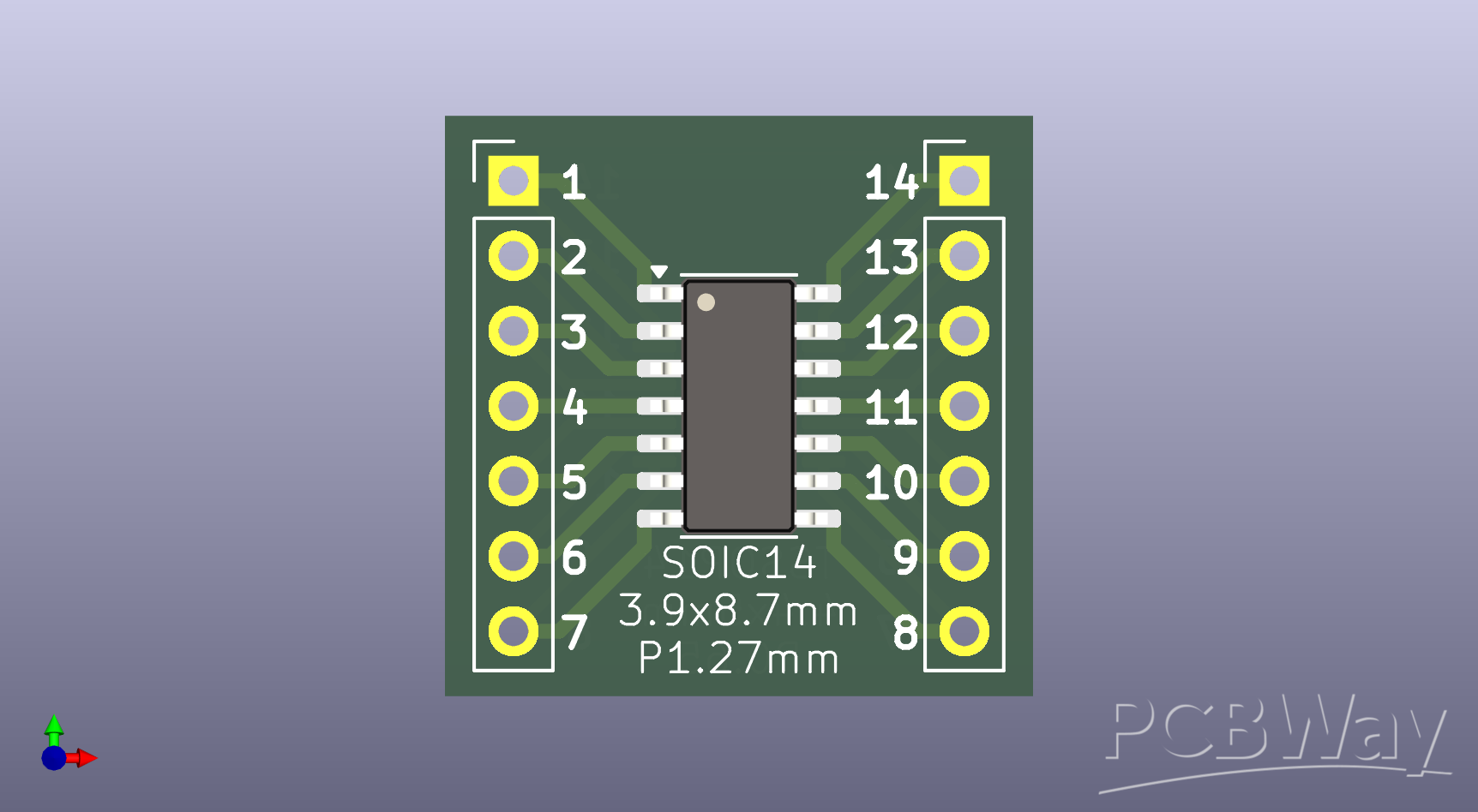 SOIC14 TSSOP14 to DIP 14 Adapter 2.54 Pitch for easy breadboardingBoard Size = 2 layer board of 19.6...
