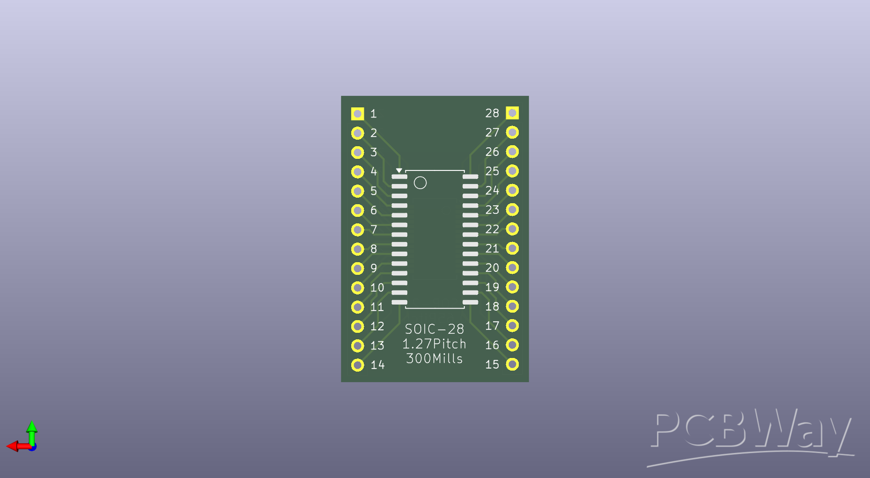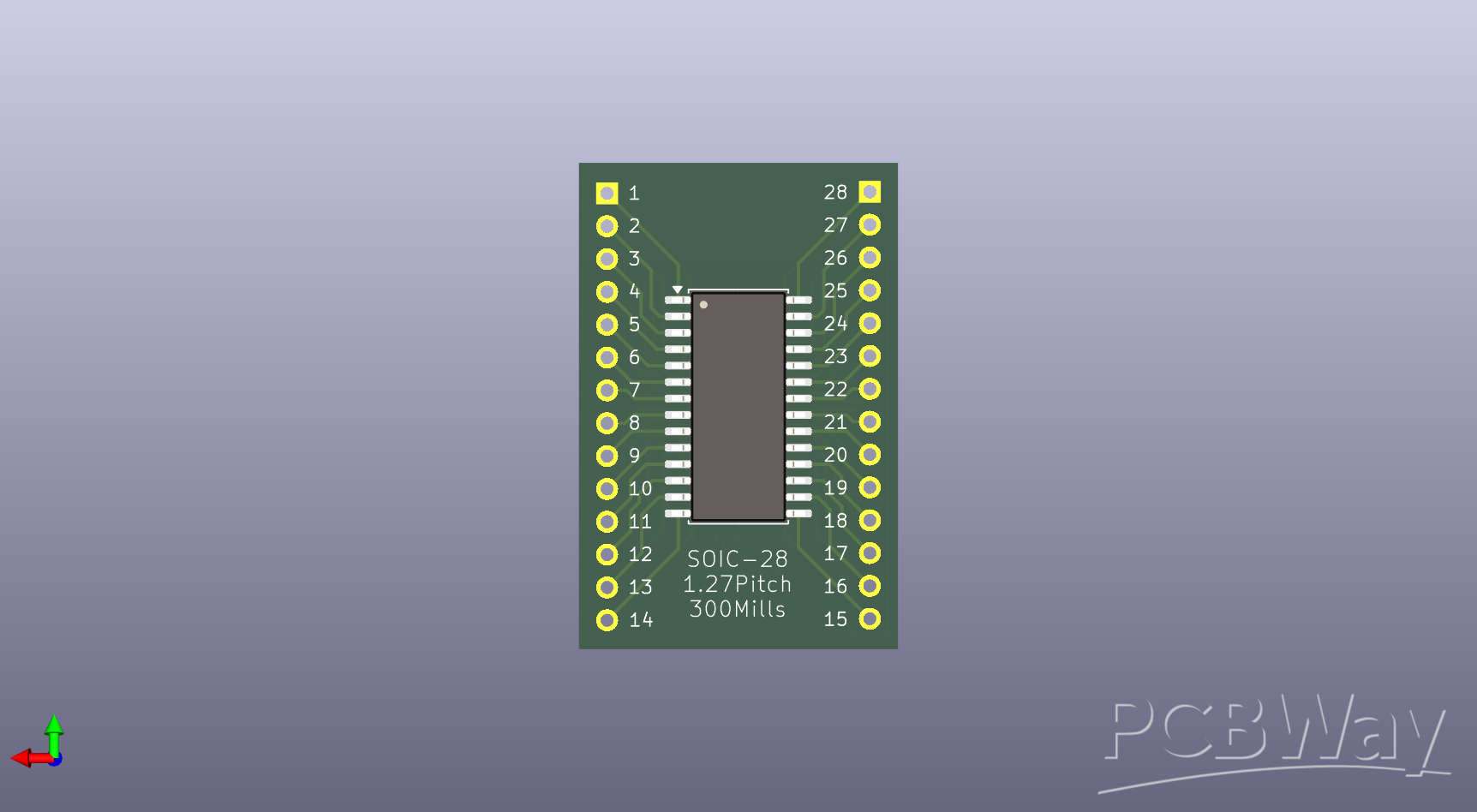 SOIC-28 SSOP-28 Breakout Board for easy breadboardingPin Header 2.54mmPCB Size : 24.7mm x 37.6mmSOIC...