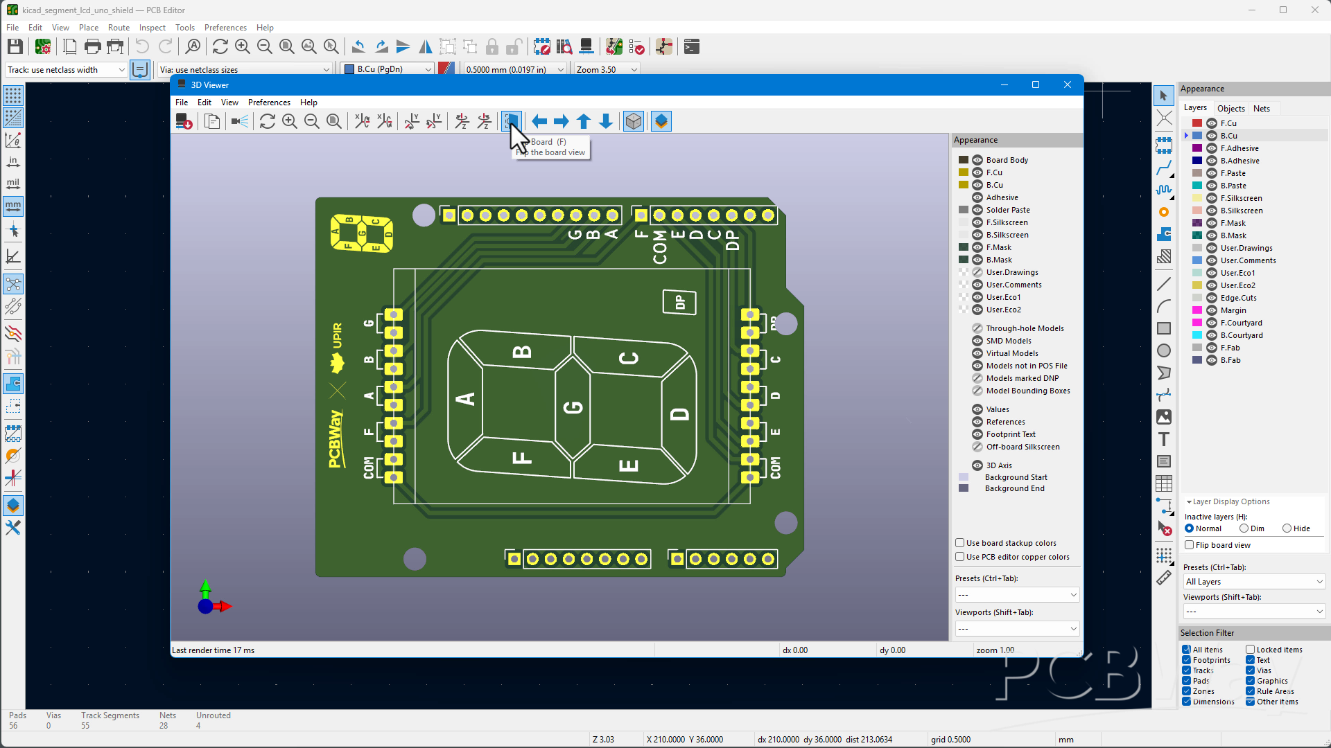 A simple PCB shield for the MAX7219 modules to replace the default 8x8 LED Matrix display with an LE...