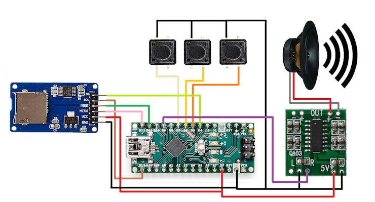 If you want to add any other music files, make sure to convert them into .wav format and then add them to SD Card for playback.