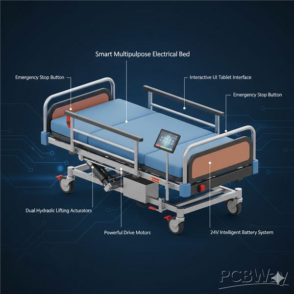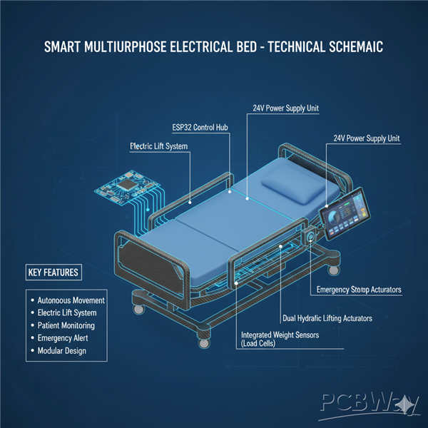 The Smart Multipurpose Electrical Bed is an advanced medical and home-care solution designed to enhance patient comfort and caregiver efficiency. By integrating the ESP32 microcontroller, high-torque actuators, and IoT capabilities, the system provides automated positioning, patient monitoring, and emergency response features.