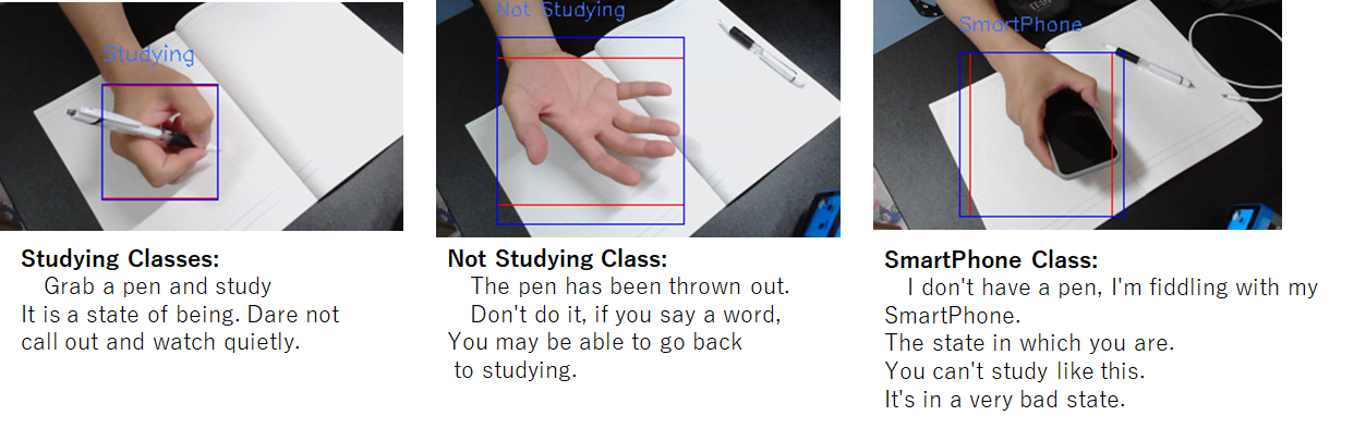 It determines whether you are holding a pen and infers whether you are studying or not.