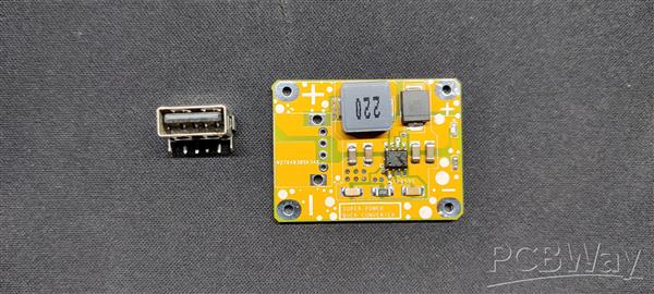 The result of the PCB Assembly process is this power module, which can provide a consistent output between 3 and 12 volts, depending on the source.