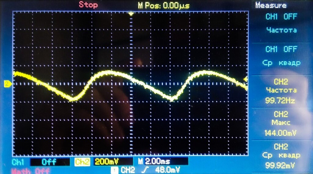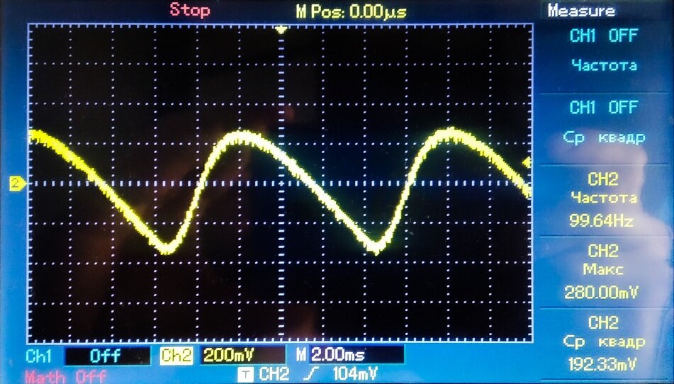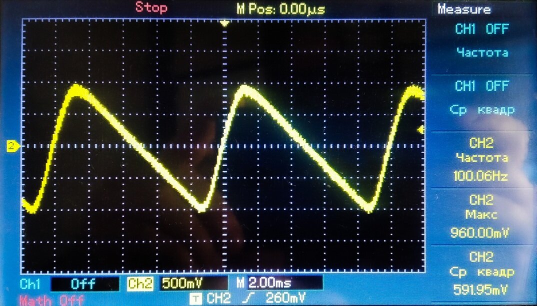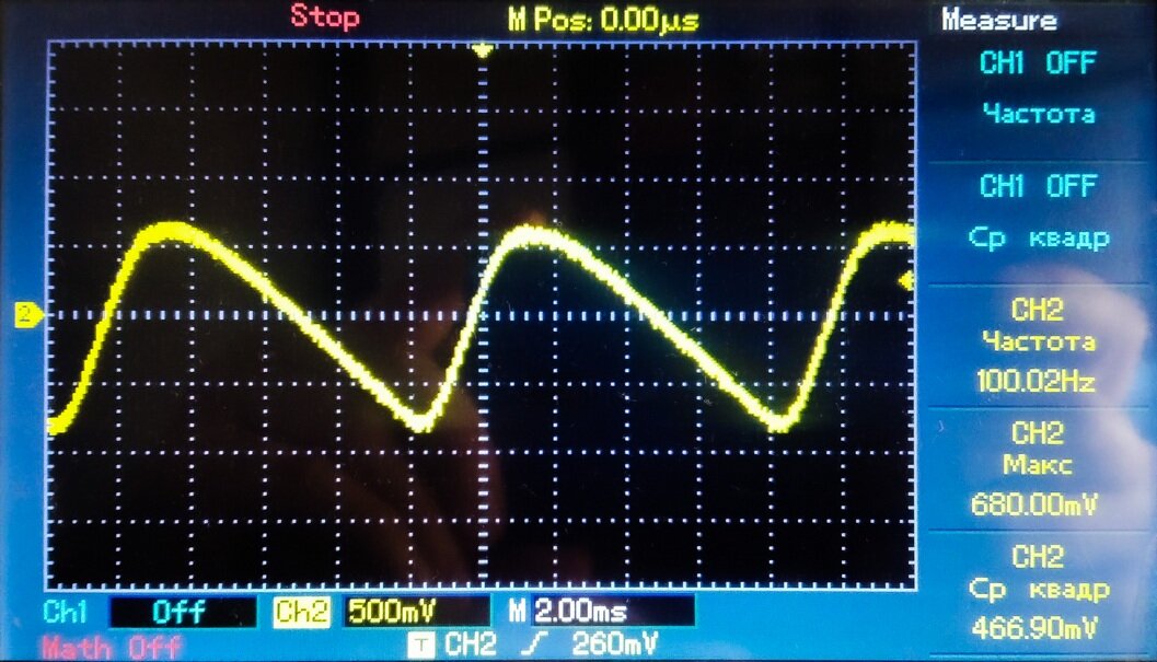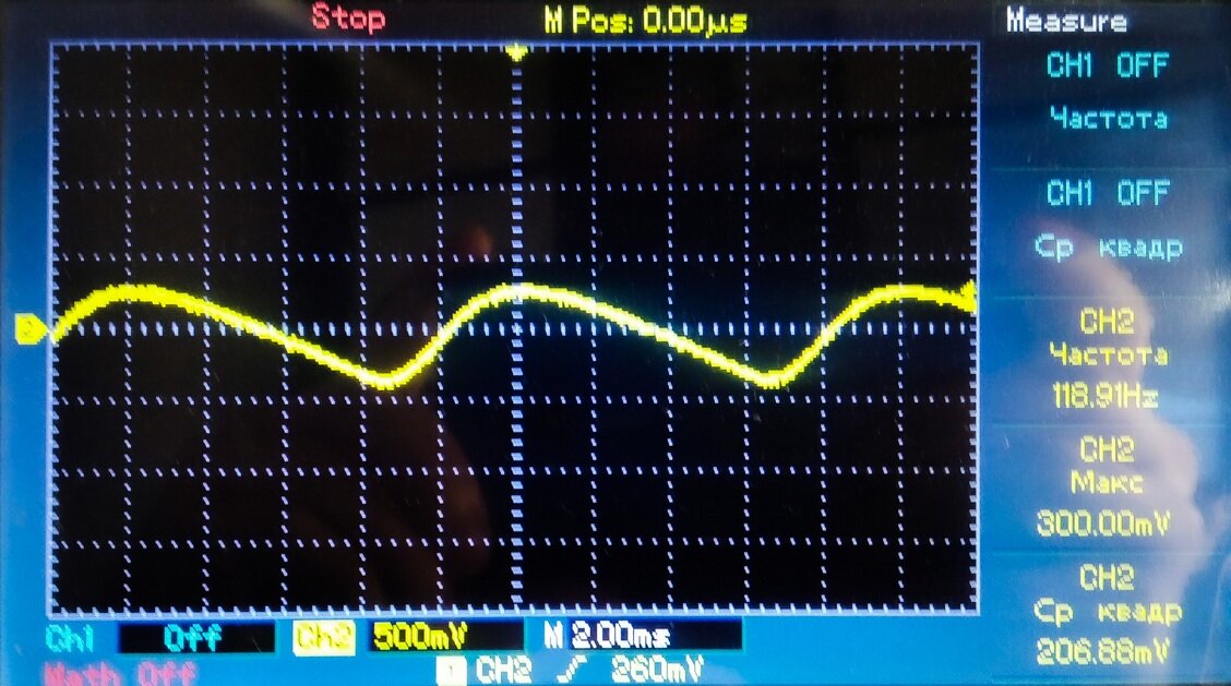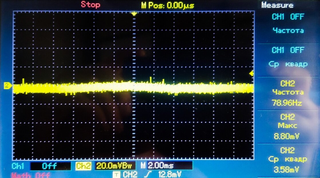 Выходная мощность - 0 Вт, амплитуда пульсаций выходного напряжения - 15 мВ