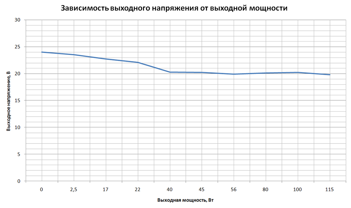 Выходная мощность - 115 Вт, амплитуда пульсаций выходного напряжения - 2,3 В