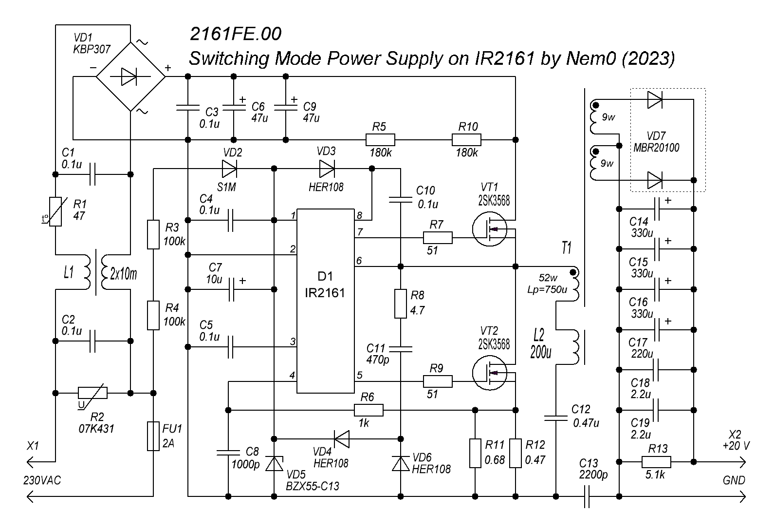 Switching power supply - IR2161 FE | Импульсный блок питания - IR2161 FE