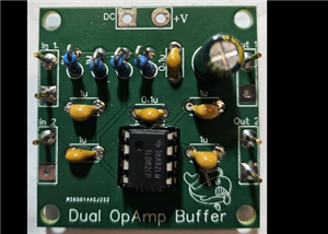 When one is not enough you need a dual non-inverting op-amp unity buffer. Single DC power rail. 40mm...