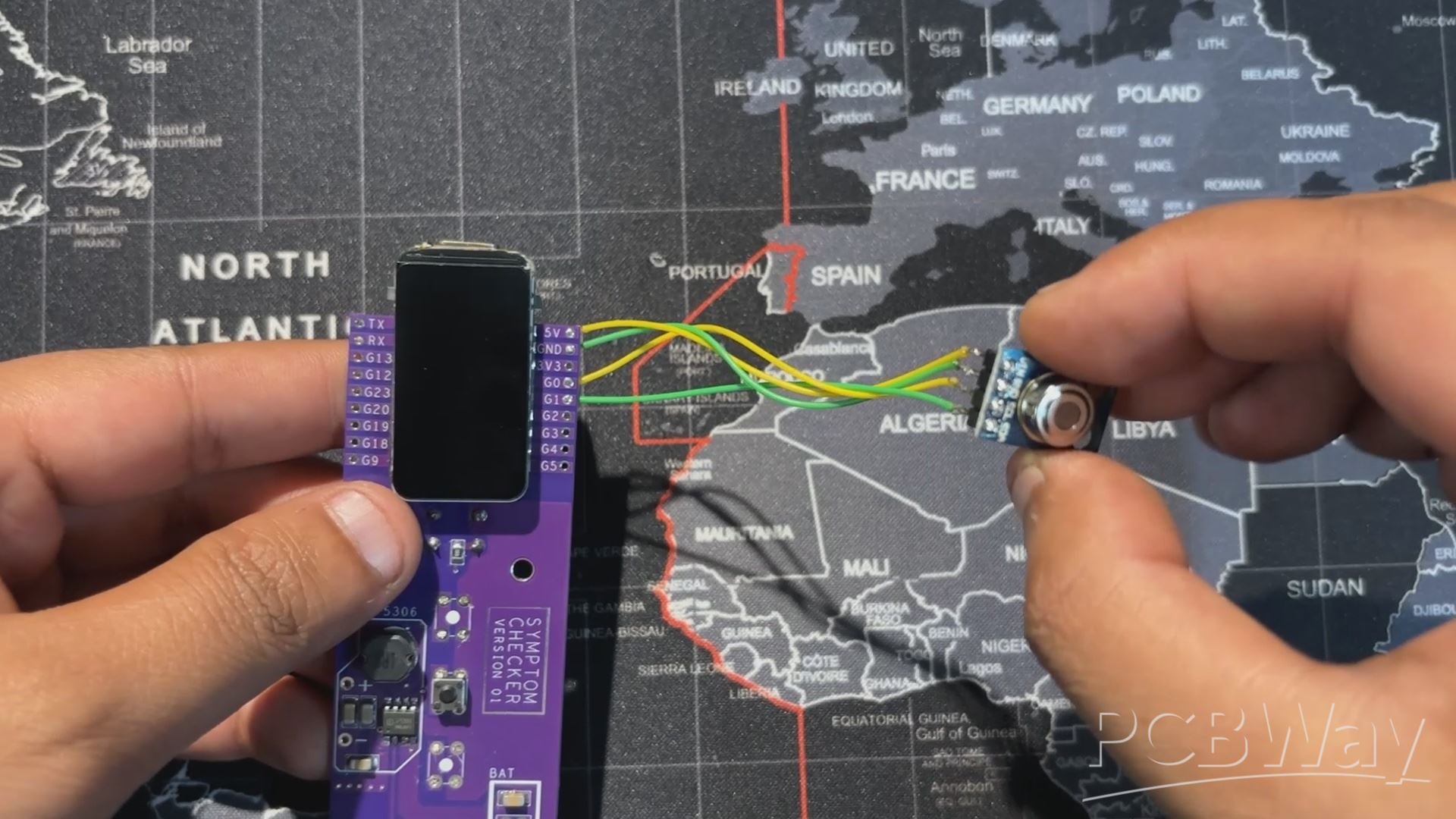 We built TempGun Pro by reusing the Medic Mini main board with just a few small modifications and add‑ons. To recap, Medic Mini was a handheld self‑diagnostic tool powered by an ESP32‑C6 and a 1.47" Waveshare display, all packed into a custom PCB and 3D‑printed enclosure. It featured three tactile buttons to guide users through symptom checks and offered quick suggestions without needing apps or internet.