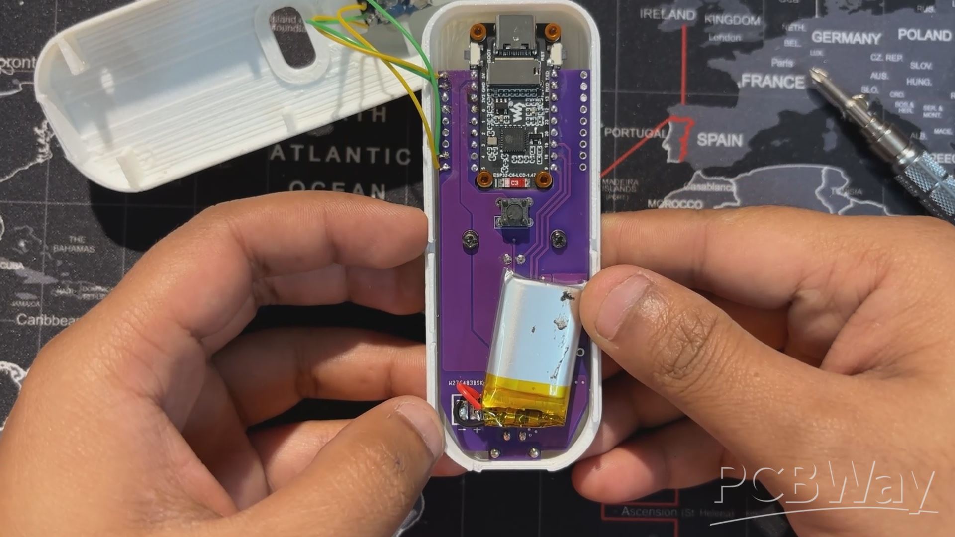 Finally, using the four mounting holes provided around the perimeter of the design, we insert M2 screws to secure the front and back enclosures, completing the assembly process.