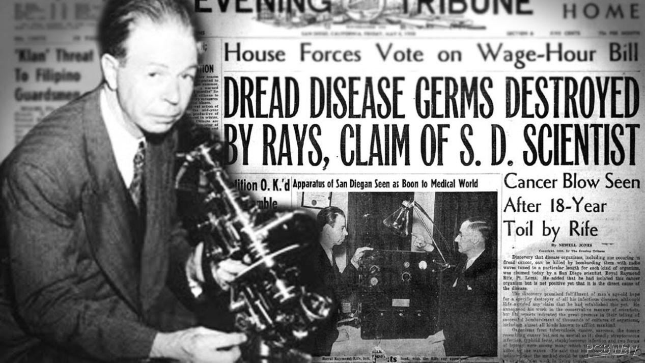 Royal Raymond Rife was a scientist, inventor and medical researcher. He is known for his microscopes, which he claimed could observe live microorganisms but also by an electronic device constructed by him called the Rife Machine, which according to his claims, is capable of curing very serious and incurable diseases.