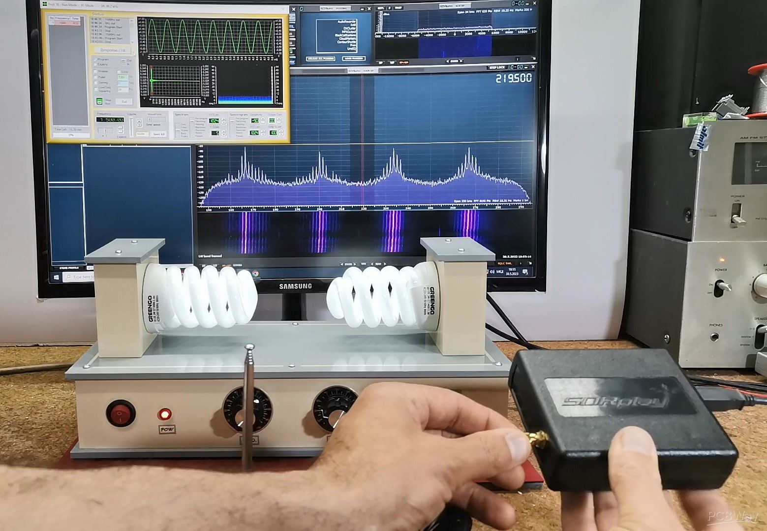 We will detect this radiation with a Spectral Analyzer (in my case SDR Radio) and special software through a small antenna.