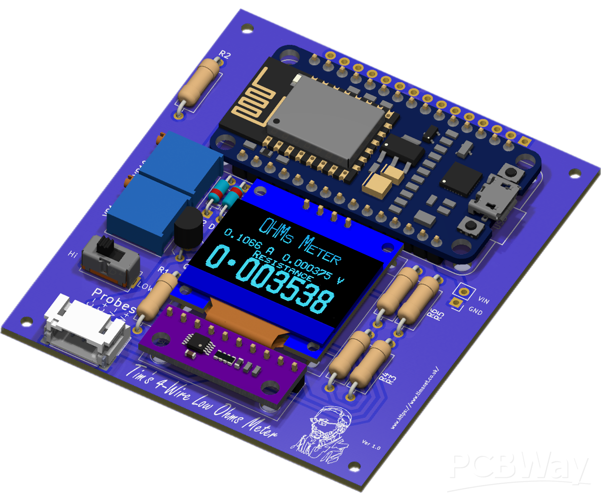Tim’s 4‑Wire Low‑Ohms Resistance MeterA precision Kelvin‑probe instrument using an ESP8266, ADS1115,...