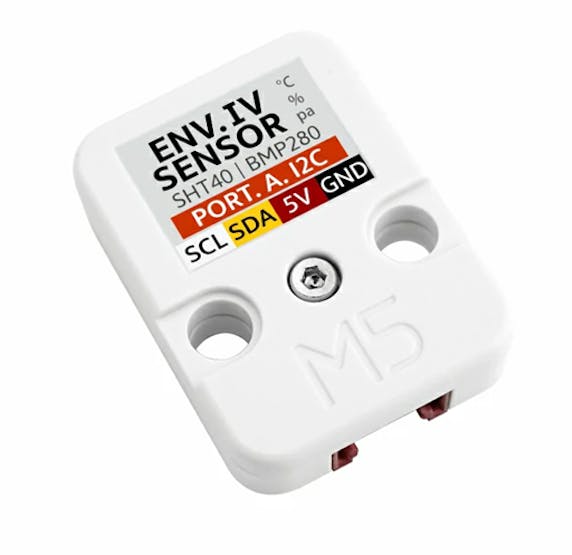 Along with the Atom Lite, this monitor also includes the ENV IV Unit, also from M5Stack. It can measure temperature, humidity, and atmospheric pressure using its onboard SHT40 and BMP280 sensors. It features a Grove connector for easy connection to a controller and communicates via the I2C protocol.