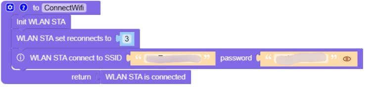 The ConnectWifi function tries to connect to the Wi-Fi network in STATION mode using the provided SSID and password.