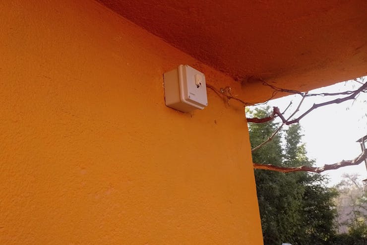 Since the ENV IV unit is not water-resistant and not intended for direct outdoor use, I installed the box outside, but under a roof overhang, so it's protected from direct rain. (Time will tell if this setup holds up under those conditions.)