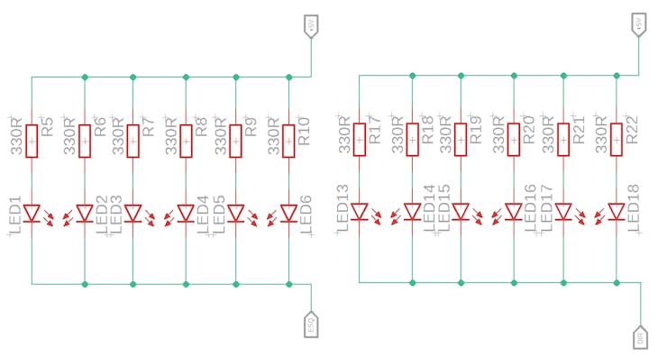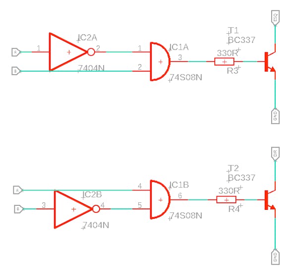 At the output of each circuit, transistors were placed to switch the set of 6 LEDs to signal left and right.