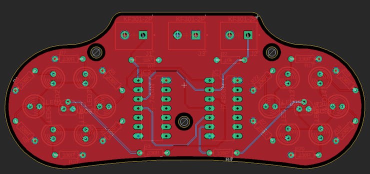 Finally, we finalized the electronic schematic design and developed the layout of the printed circuit board. See the result in the figure below.