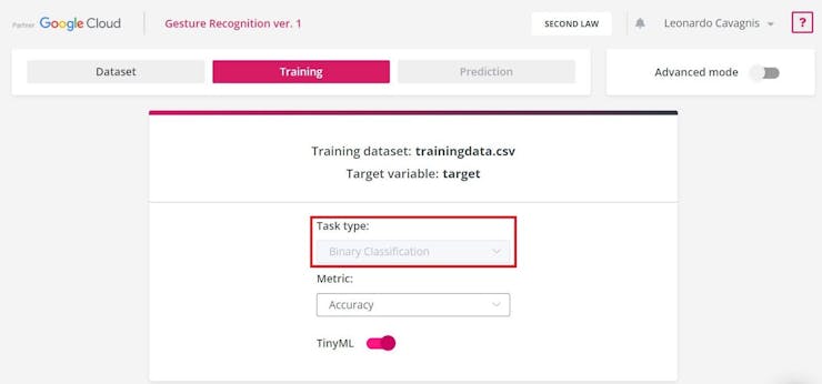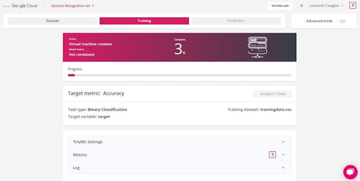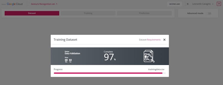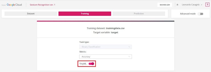 The first step to building the predictive model is to collect enough motion measurements.This set of measures is called training dataset and it will be used to train the Neuton neural network builder.