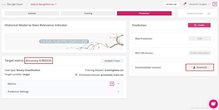 For each detected motion, the model will try to guess what type of movement is (0-punch or 1-flex) and how accurate the prediction is. If the accuracy of the prediction is low (0.5), the model does not make a decision.