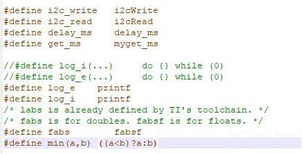 We need to define and implement the functions i2c_write, i2c_read, delay_ms, get_ms, reg_int_cb, labs, fabsf, and min. The other tasks in the DMP library call these interfaces. get_ms and reg_int_cb are used to obtain the timestamp and callback function, respectively. If they are not needed, they can be omitted. Labs is a function from the Linux standard library (stdlib.h). fabsf and fabs are functions from the math library (math.h), with the former taking a single-precision floating-point parameter and the latter taking a double-precision floating-point parameter. Here, we need a single-precision floating-point number. Their definitions are shown in the figure below: