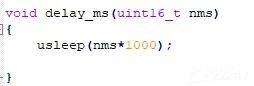 The millisecond delay function is implemented using the usleep function, which is a microsecond function that multiplies by 1000 to achieve a millisecond delay.
