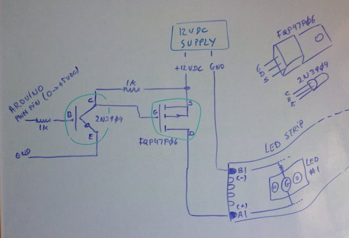 In order to control colors (and intensity), I need to control A1, A2 and A3. The LED strip requires 12 VDC feed and, even if you had a 5 VDC LED strip, it would require to much current to be controlled directly, that's why I need some kind of circuit based on transistors.