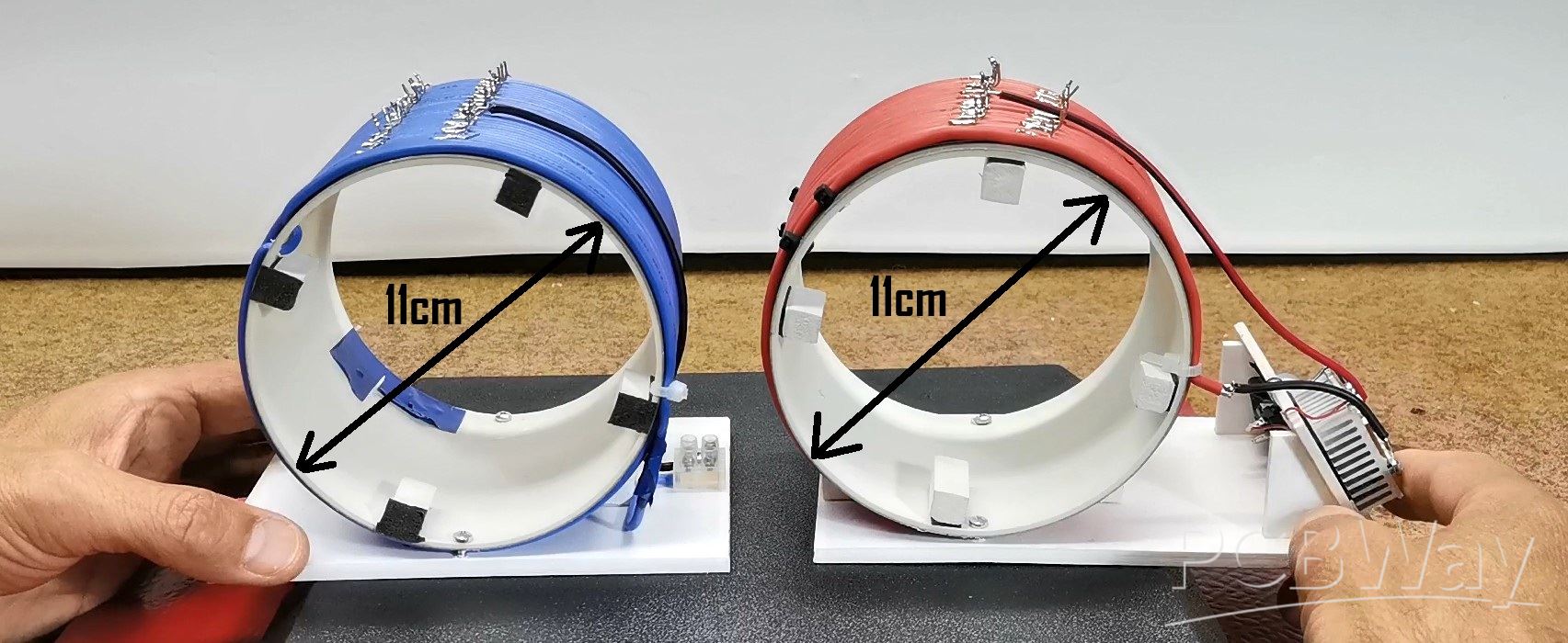 I wound these coils on a plastic cylinder with a diameter of 11cm and used insulated wire with a thickness of 1.5mm.