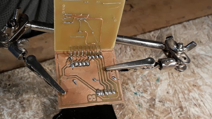 Repeat the above steps with the next boards and solder them together with goldpins.