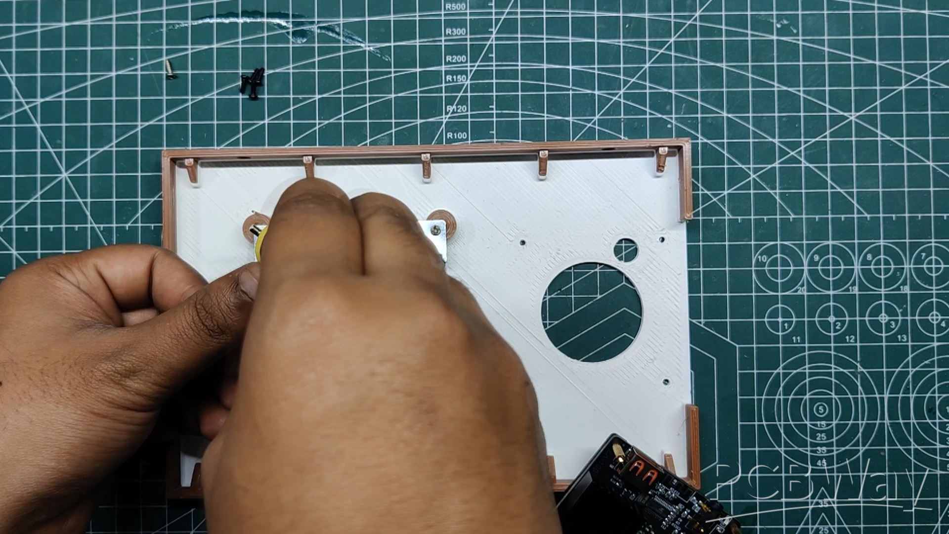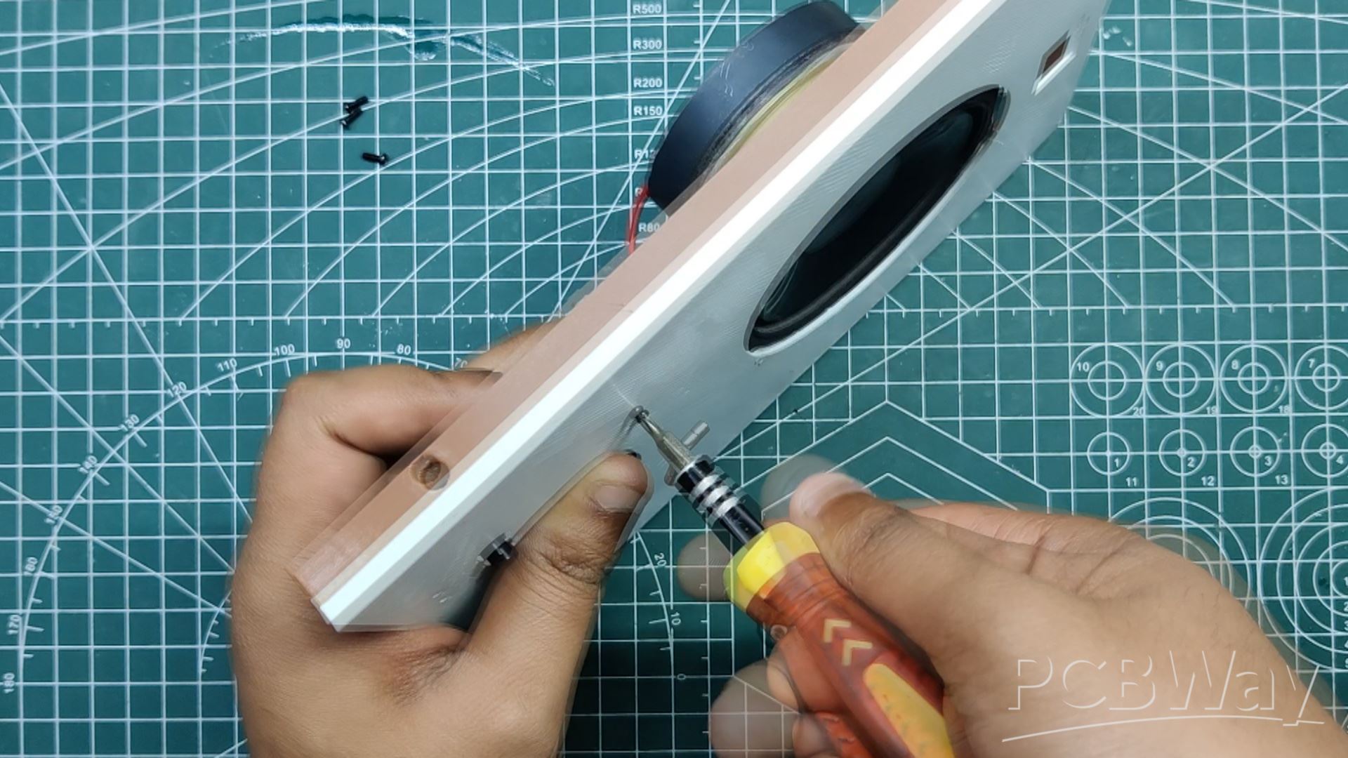 - The assembly process was rather simple; we first positioned the speaker according to the design and used four M2 screws to secure the speaker in place.