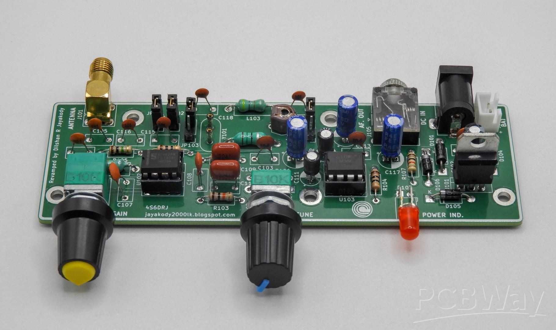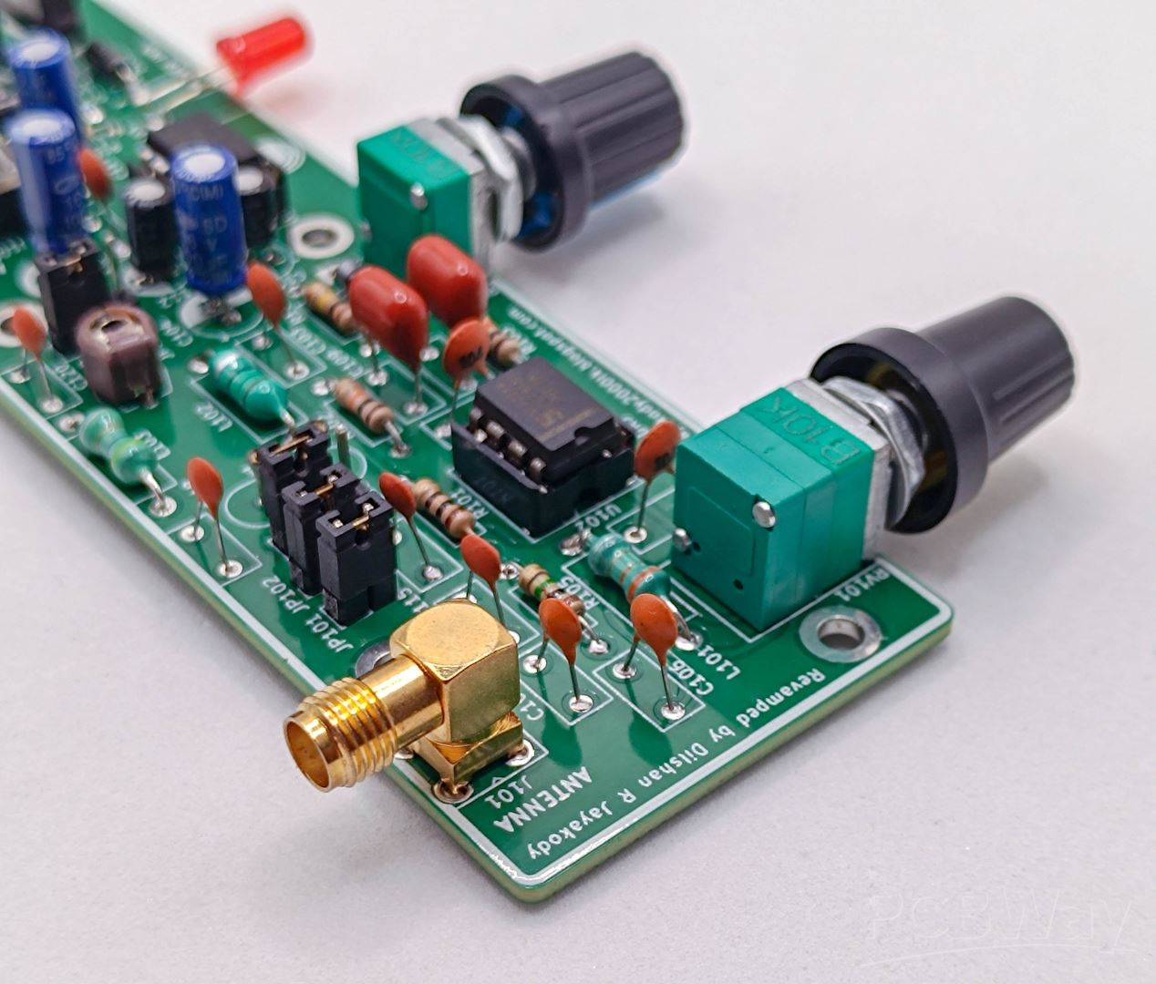 For my testing, I used a 9V DC power supply and my 50Ω outdoor wire antenna. Since I used the 1A version of the 7806 regulator in this design, it is safe to feed a 12V or 15V DC input to the circuit. For voltages under 12V, no heatsink is required for the 7806. Like the original ZZRX-40, this design also supports battery power, but it switches to battery only if the DC jack is removed (the manual power source selection switch was removed in my design).