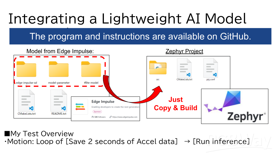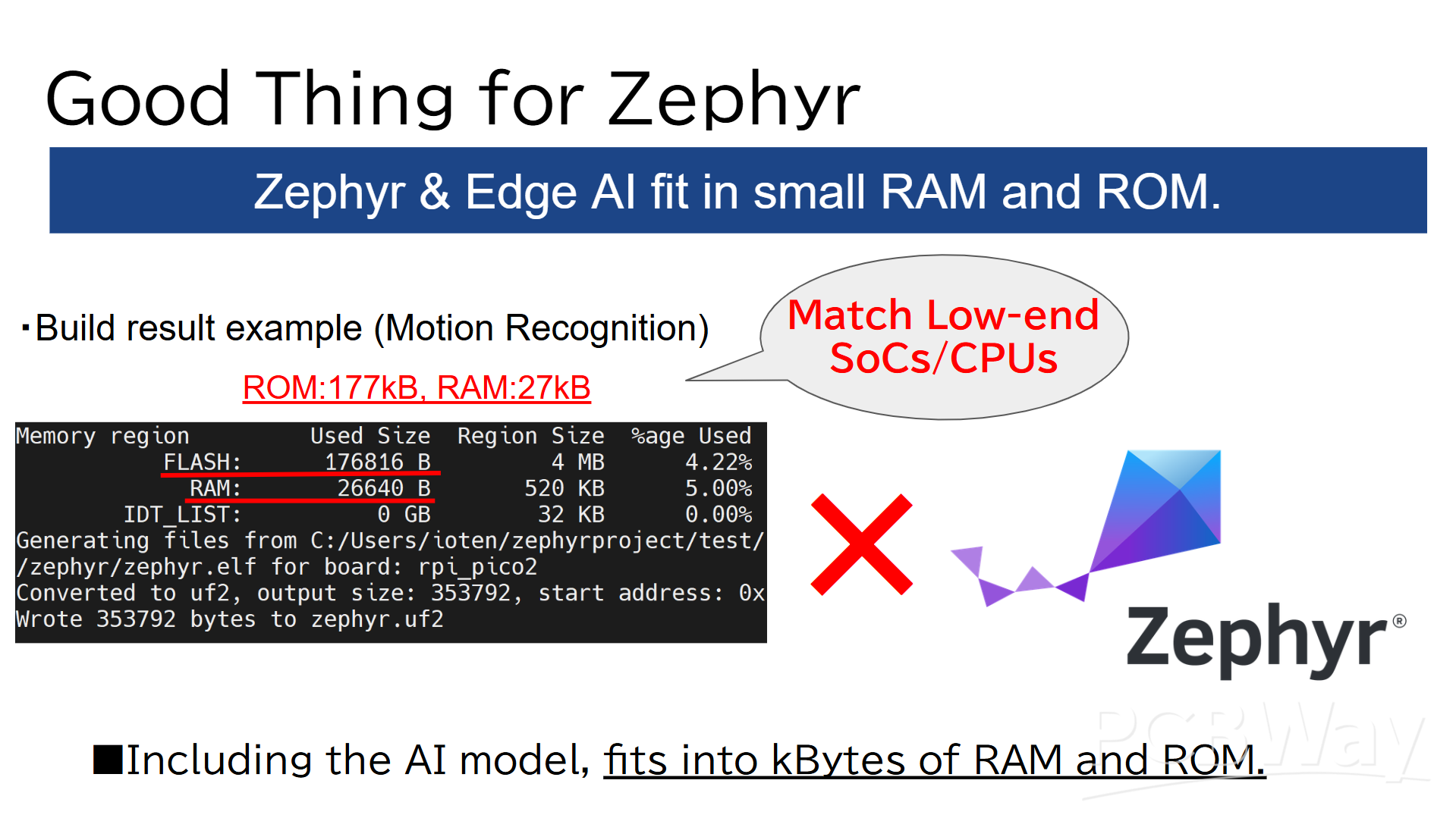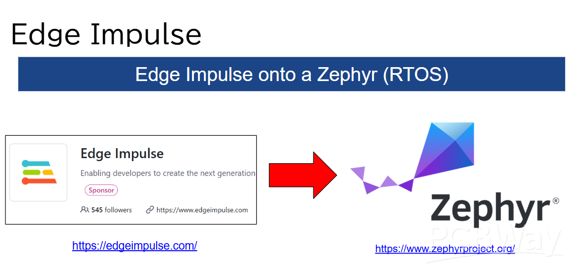 We can build with the Zephyr(RTOS) and Edge AI models deployed from Edge Impulse.