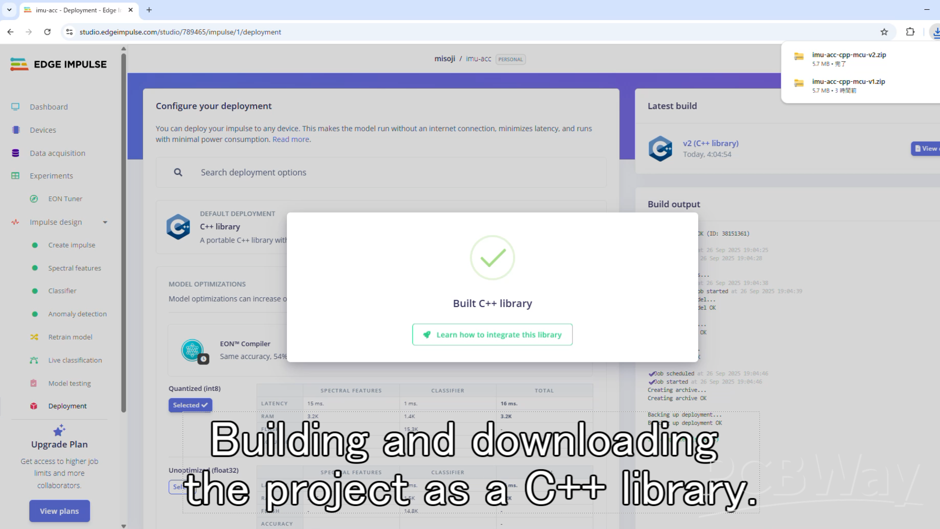 Finally, proceed to the Deployment section. Select C++ Library as the target and build the model.