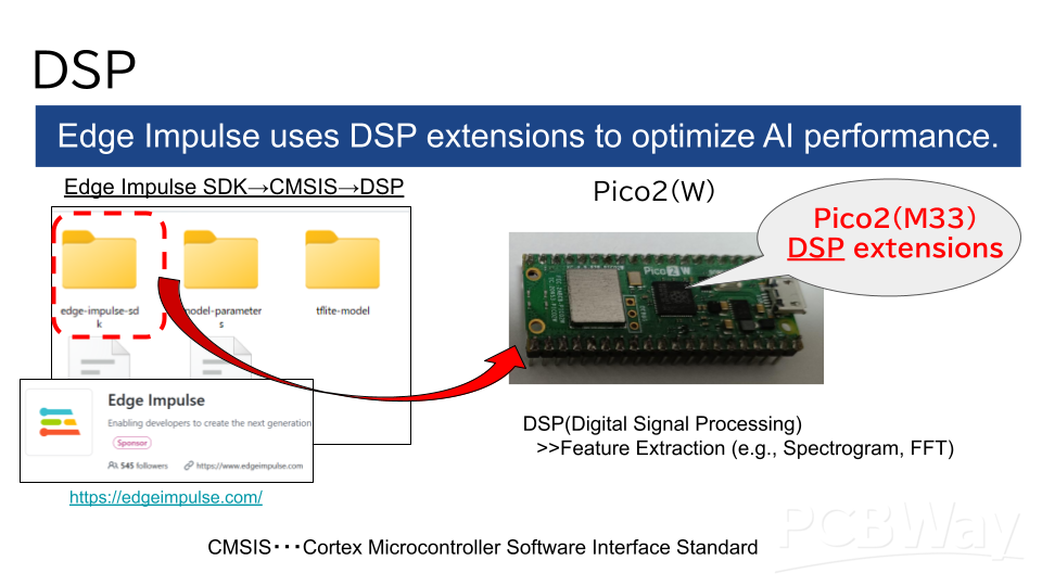 With Edge Impulse, these DSP extensions are automatically applied via CMSIS.