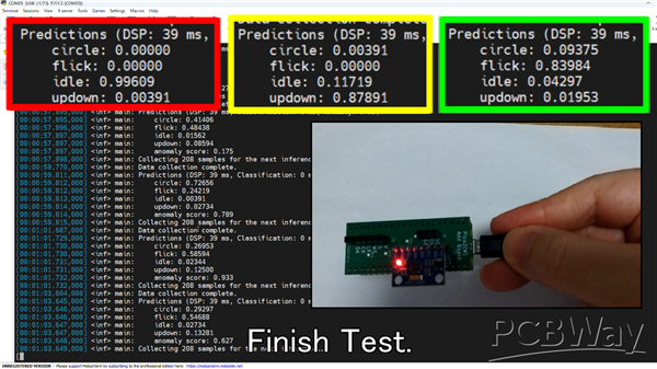 It successfully detects "Idle," "Updown," and "Flick" motions without any issues.