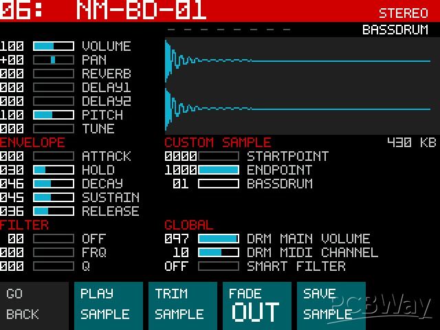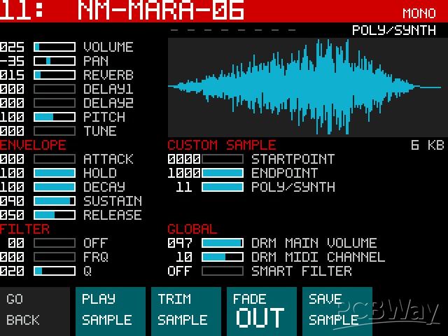 Sample Management from SD-CARD and SPI FLASH/PSRAM, samples can be loaded from SD-CARD to PSRAM during runtime.