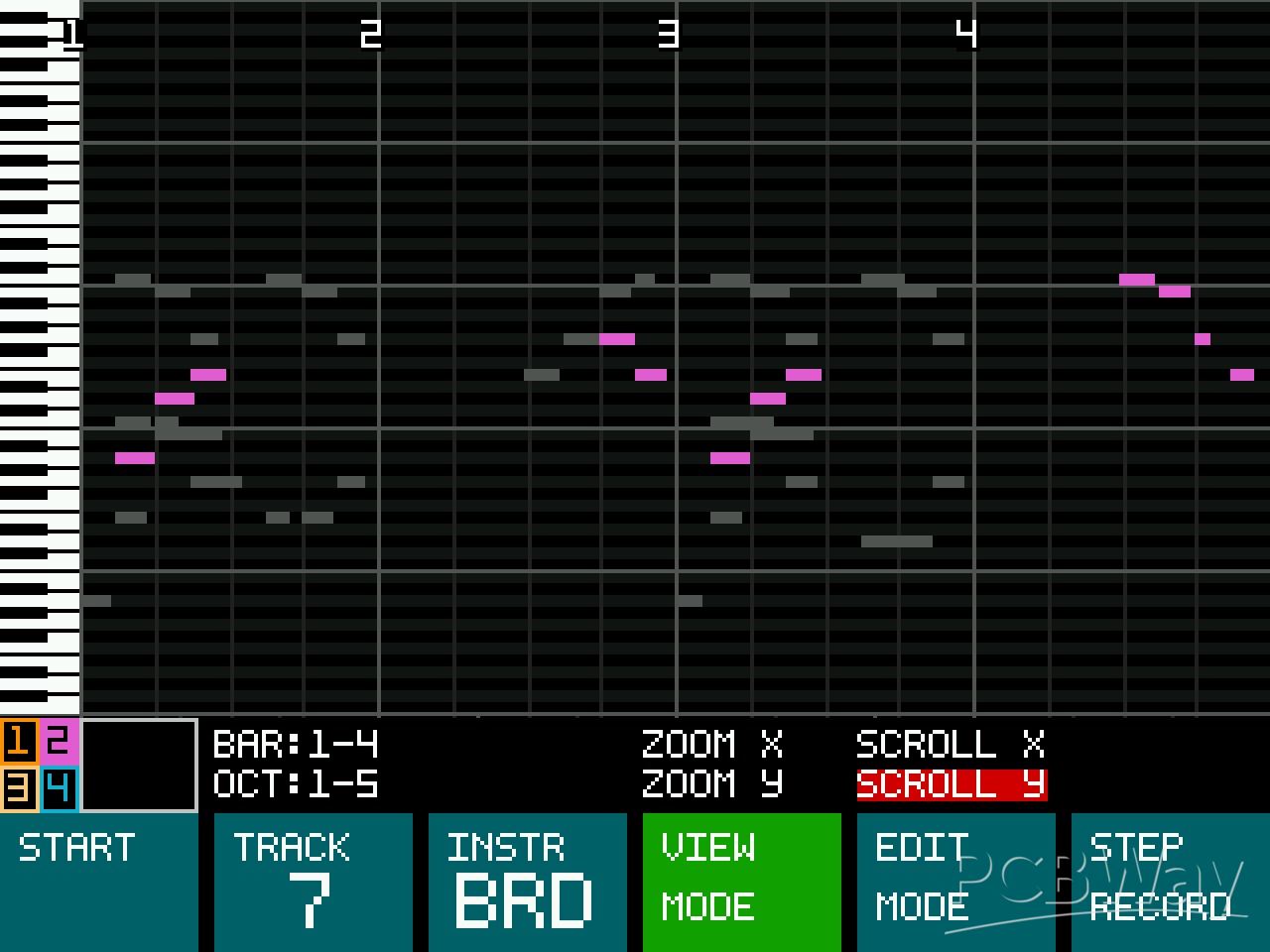 The sequencer can also play chords of various types, stacked up to 7 notes, using only a single sequencer track
