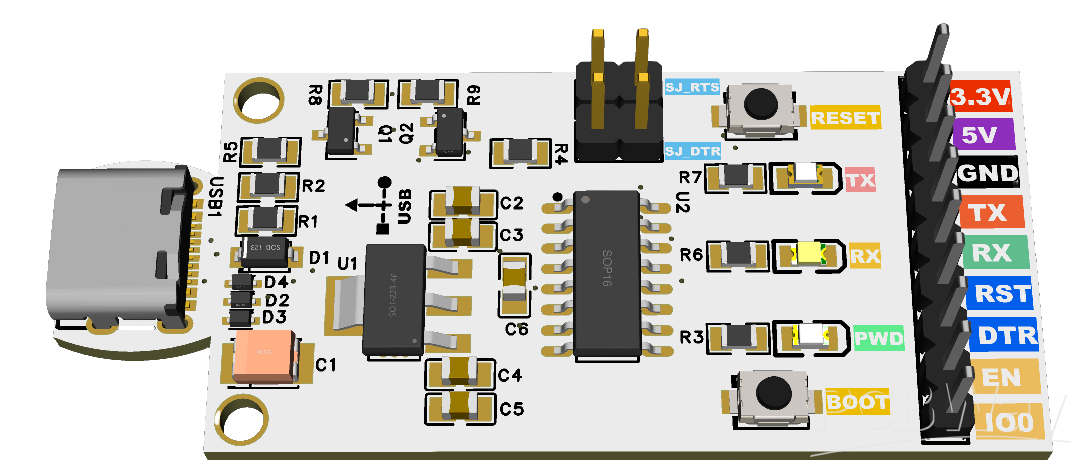 SJ_DTR → Connects DTR → IO0 (boot line).