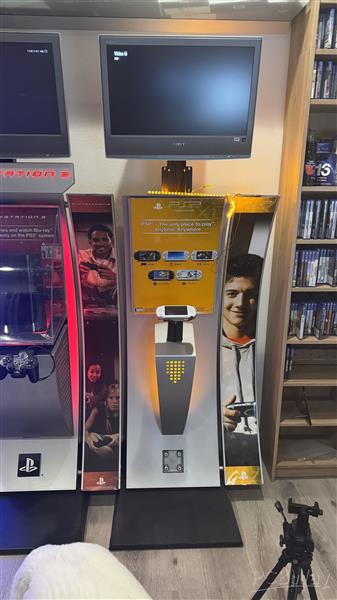 I have made significant progress restoring the PlayStation Portable / PSP display based on the photos so far, but I ran across an issue that I couldn't replicate or solve on my own. There was a very specific part missing from this display that is too big for me to 3D print at home. The marquee is essentially the “crown” of the kiosk — a topper with lights built inside so that when the display is powered on, the logo glows brightly to catch people’s attention. I'll show some examples of what is missing below: