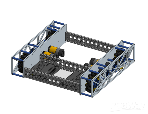 The robot uses a four-wheel mecanum drivetrain, enabling omnidirectional movement. Power is transmitted through a pulley-based system, which improves precision by eliminating gear backlash, resulting in smooth and accurate motion across the field.