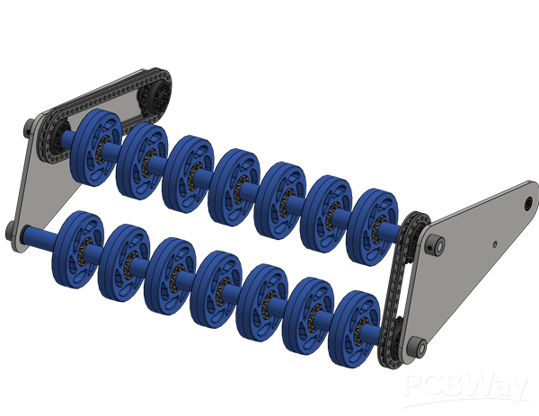The second and third shafts form a pivot system, which allows the game element to enter the intake while preventing it from exiting unintentionally. These shafts use TPU-printed compliant wheels, enabling adjustable flexibility for better control of the game elements.