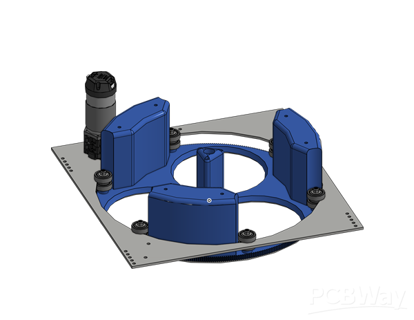 The spin indexer operates using color sensors and a REV HD Hex motor with a 15:1 reduction. Through a gear-driven connection to its base, the system rotates at the optimal speed required to quickly and accurately classify game elements.