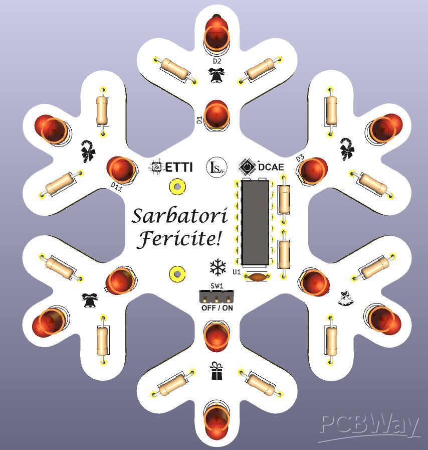 This project has been a staple for us, as we've done it since the beginning and it marked the start of our collaboration with the electronics faculty of our university. The purpose of this project is to familiarize students with soldering THT components onto PCBs and it also helps us bringing our community closer before the holidays. Last year we've managed to realise around 200 of these.