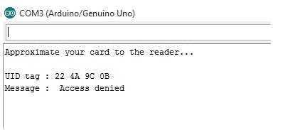 In the piece of code above you need to change the if (content.substring(1) == “REPLACE WITH YOUR UID”) and type the UID card you’ve written previously.