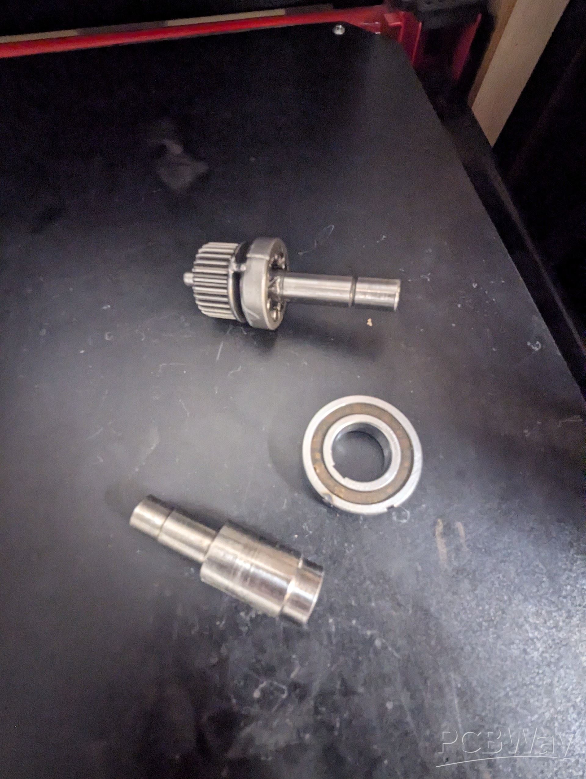 which will allow the motor to be hidden an good looking. The picture above show where the motor has enough room to sit behind the kickstart. The picture at the bottom is where I have my one way bearing and to shafts that I had in the garage and that gave me an idea on how everything work. I took this and turned it into a design and I now want to make a prototype for my bike.