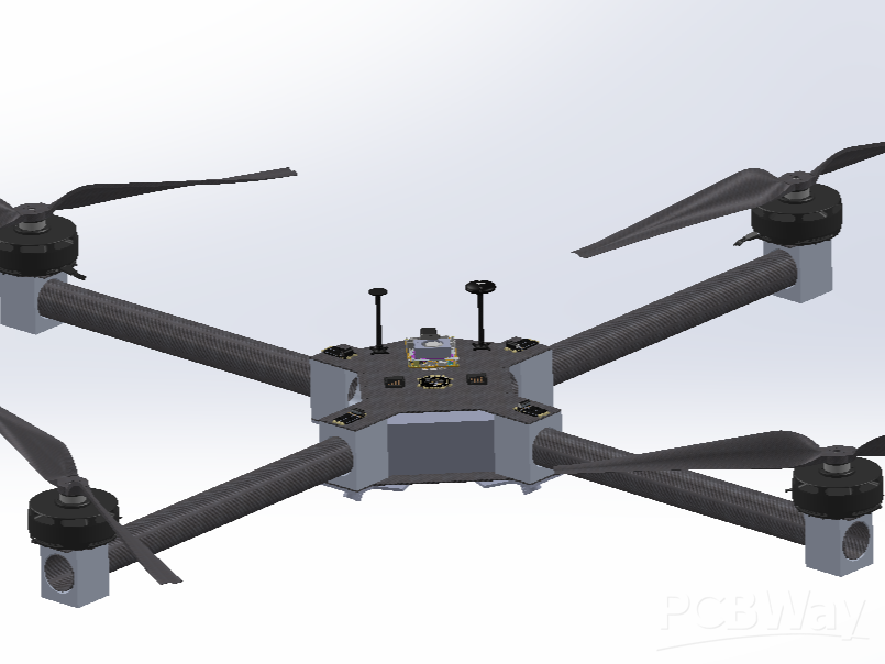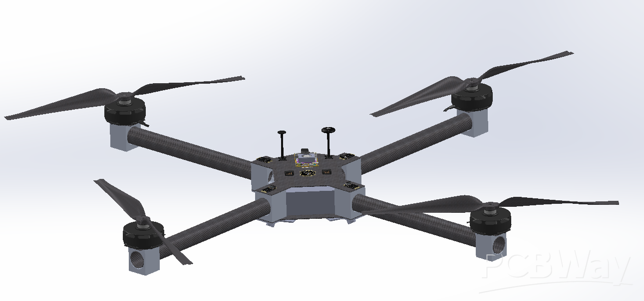 The drone consists of several electronic components: the motors, ESCs, Power Distribution Board, battery, flight controller, companion computer, PWM receivers, 2-way telemetry/RC radio, GPS module, camera and gimbal, LiDAR sensor, and airdrop servos. For construction, different propellers, plates, arms, leg mounts, legs, and connecting clamps are entirely designed by us, and created using CNC machining aluminum or carbon fiber either in house or with partner manufacturers. The airdrop will be modular and interchangeable for different tasks but will also be designed using the same principals. This design will allow it to fly for a 14-mile range on one charge, and a 77-minute maximum flight time.