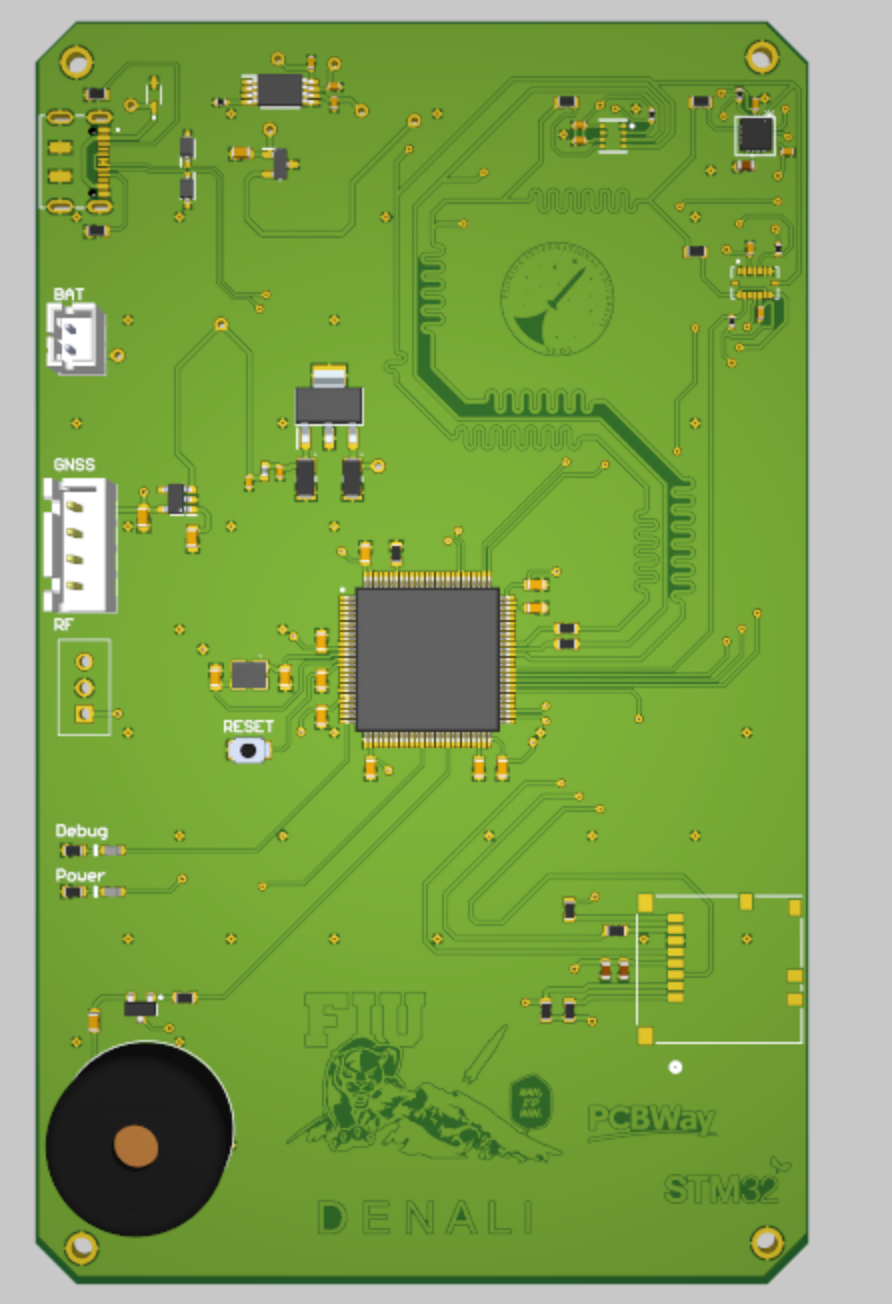 Our student-researched and developed (SRAD) flight computer serves as the primary telemetry system aboard our competition rockets. Built around the STM32H7-based system with advanced sensor integration, the Denali flight computer collects and transmits critical flight data in real-time while maintaining onboard data logging for post-flight analysis.