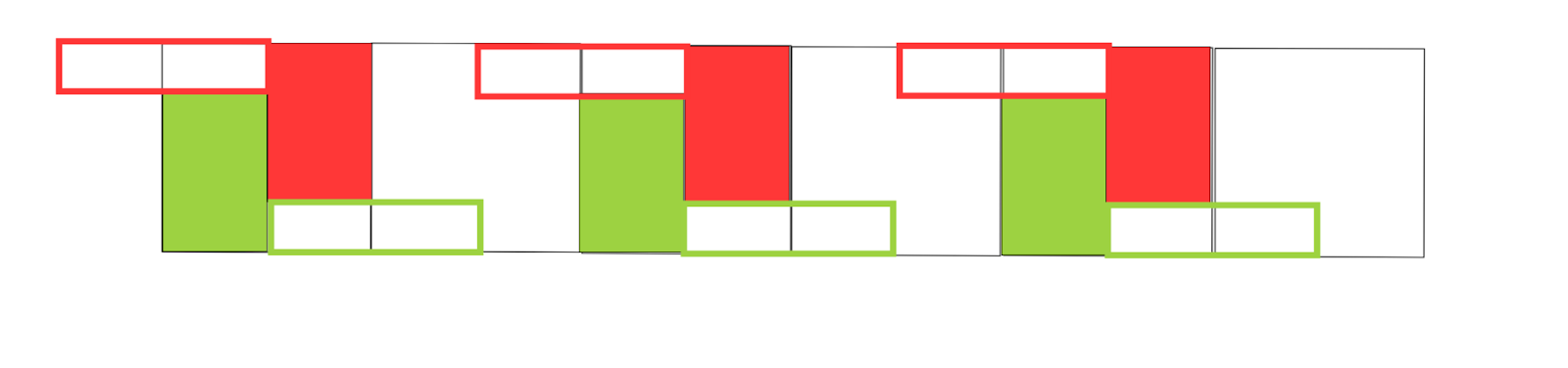 The outlined sections are parts of the fluid pouch over an edge, while the filled in sections represent the section that will get pressed down by a flat part. A video of this interaction is below: