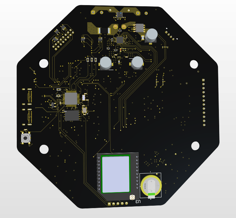 The PCB features a battery monitoring circuitry and buck converters that allow the supply voltage to be converted to 8V, 5V and 3.3V to be supplied to the different components with different voltage and current requirements.