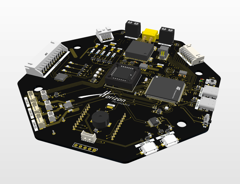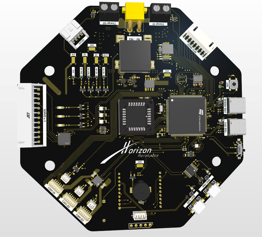 The flight computer aboard the rocket is the brain of the rocket which will be in-charge of all stages of flights from launch to recovery. Our flight computer features an STM32H7 microcontroller and numerous sensors that allow in-flight monitoring from the ground station and key activities like performing roll control and handling ejection charges for the deployment of parachutes.