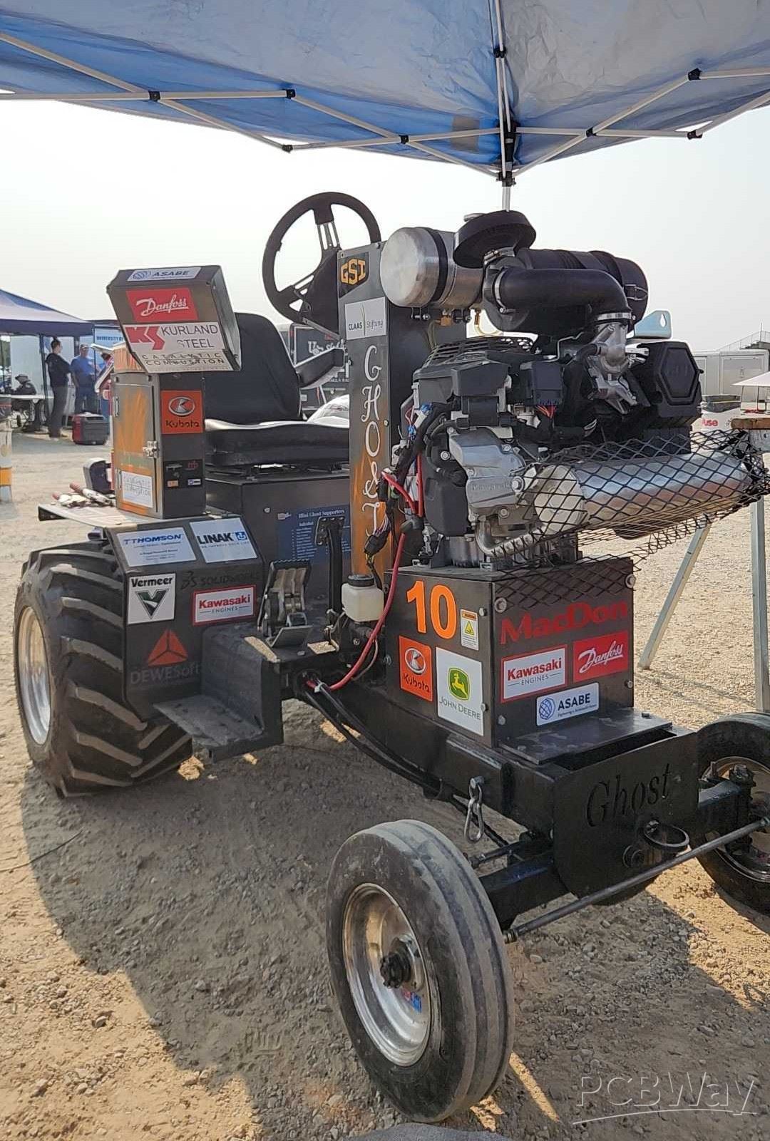 The Illini Pullers are a student design team at the University of Illinois Urbana-Champaign that design, build, and compete a quarter scale pulling tractor in an international competition put on by the American Society of Agricultural and Biological Engineers (ASABE). This competition challenges students to develop creative designs and find new solutions for building a brand new tractor annually, with the goal of maximizing pulling ability, durability, marketability, ergonomics, safety, and other criteria. The club provides valuable hands-on experience and industry connections for many students. In previous years, the electronics subsystem of the tractor utilized off the shelf controllers to reduce design complexity and increase reliability. These controllers were convenient, but somewhat limited in functionality and restricted design freedom. Furthermore, additional electronics were needed for power distribution, which increased space requirements and added wiring complexity.
